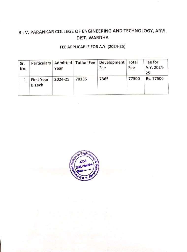 Fees for Academic Year 2024-25