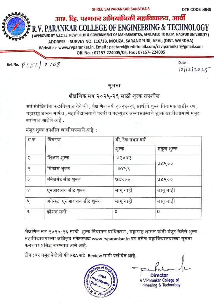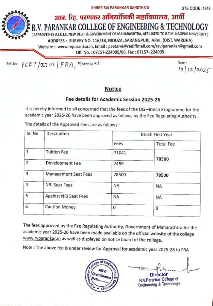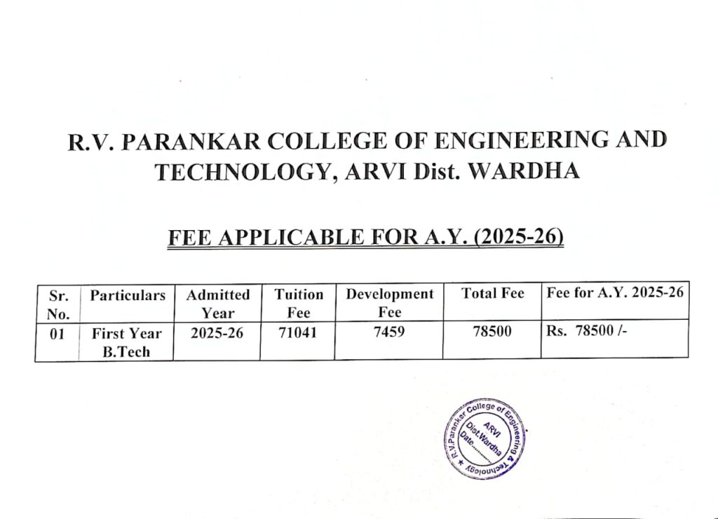 Fees for Academic Year 2025-26