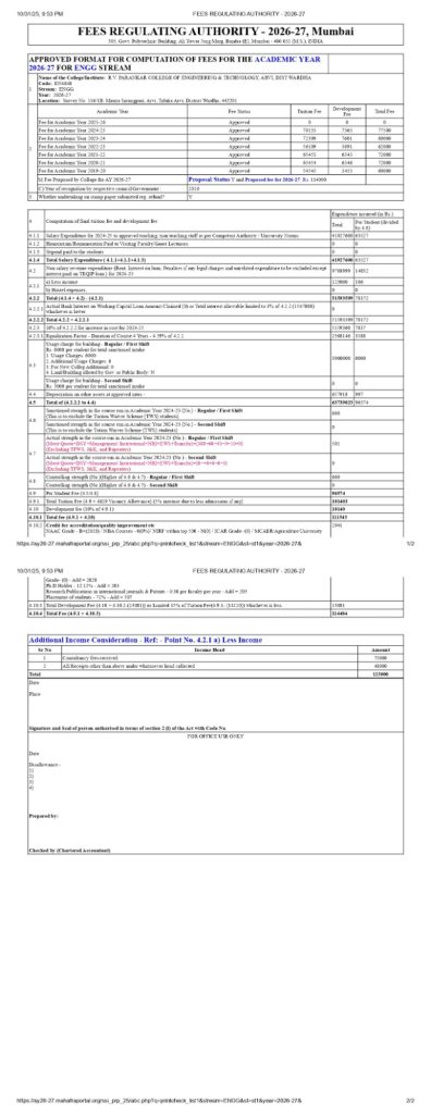 Online proposal submitted to FRA for approval of fees for 2024-25